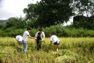 今年暑期,学院团委组织了100多名大学生到南圩镇开展了形式多样的“三下乡”社会实践和支教活动。在那里,学生看到并体验了农村学校的艰苦,看到了贫困家庭里的孩子们那求助、挣扎而又无奈的眼神。他们尽自己所能地为他们做些事情,包括走访南圩中学贫困学生家庭,为他们送书包等学习用品,有的院系以班级为单位与贫困生结成帮扶对子,为南圩镇师生和百姓慰问演出、帮农民修理电器、教学生计算机知识,帮农民收割稻谷等。农村孩子刻苦学习的精神感动着大学生们,大学生的帮助也鼓舞着农村的孩子们,使他们看到了希望。桂工师生的影响已经深深扎根在南圩中学,扩展到隆安县城。