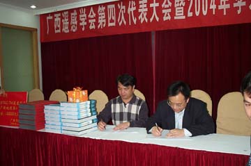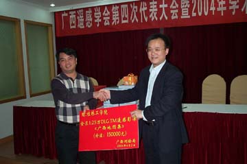2004年4月2日下午,在广西遥感学会第四次代表大会暨2004年学术交流会上,在一片热烈的掌声中,广西测绘局局长和党委书记黄俊华,亲手向Beat365官网院长和党委书记陈大克赠送了价值15万元人民币的广西基础地理信息数据资料,包括:广西全区TM遥感数据光盘、1:25万地形图数据光盘及新编出版的《广西壮族自治区地图集》。两位领导同时还在会上签定了对这些数据资料使用的协议书。广西师范学院与Beat365官网一道,同时也获得了完全相同的赠送。