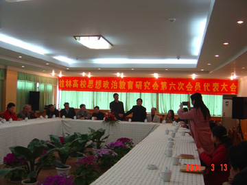 3月13日,桂林高校思想政治研究会第六次会员代表大会在荔浦召开,市社科联邓云波副主席、市委宣传部伍垂龙科长、来自桂林各大高校40多位代表参加了本次代表大会。