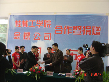 在捐赠仪式中,陈书记代表学院接受金蝶公司捐赠的价值五百万元的K/3 ERP软件系统,与金蝶软件段总监共同为“金蝶企业管理软件桂林工学院培训基地”揭牌,陈书记代表桂工回赠“诚挚感谢金蝶公司大力支持桂林工学院信息化教育建设”锦旗。本次活动将为双方的合作揭开了新的一页。