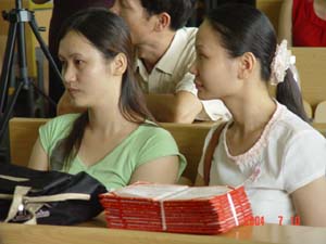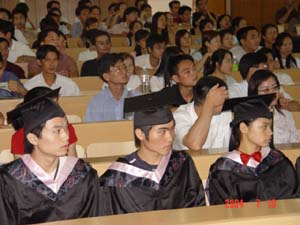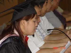 今年,共有1172名成人教育学院学生毕业,毕业生中,49名同学获得优秀毕业生称号;4名同学被评为2002—2003学年度“三好学生”,学院为他们颁发了奖状和奖金。毕业典礼开始前,师生们纷纷在教9楼前合影留念。