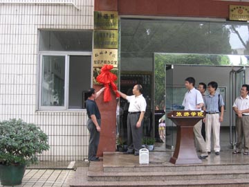 挂牌仪式由桂林工学院旅游学院程道品院长主持。周大鸣教授和阳国亮书记首先共同为研究所揭牌,科研处王敦球副处长宣读桂林工学院旅游人类学成立文件。最后,周大鸣教授和阳国亮书记分别作了讲话。