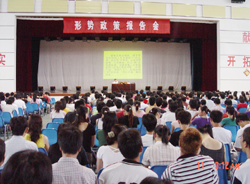 为引导广大青年学生深入学习邓小平理论和“三个代表”重要思想,树立正确的世界观、人生观、价值观和科学的发展观,正确认识国际国内形势,正确理解党和国家的重大方针政策,以实际行动为改革开放和社会主义现代化建设事业贡献力量,我院决定举办理想信念与形势政策专题报告会。 6月11日上午,学院党委副书记唐善茂为我院大学生作了首场形势政策专题报告,题为《和谐社会:一种政治理念与价值追求》。唐副书记在报告中介绍了中央提出构建社会主义和谐社会的时代背景,回顾了中华民族千百年来对和谐社会不懈追求的曲折历程,深入浅出地讲解了社会主义和谐社会的内涵、价值追求、基本特征、如何构建社会主义和谐社会以及在构建社会主义和谐社会的过程中应该避免与防止的错误观念与做法,为大学生们上了一堂生动精彩的形势政策教育课。