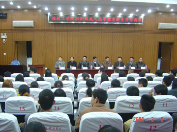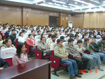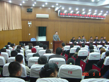 3月6日晚8点,我院2005级成人高等教育新生开学典礼在9501教室举行。开学典礼由成教学院院长吴国泉主持,阮百尧副院长出席了典礼并作了重要讲话。他首先代表学校党委、行政和全校师生员工向来自广西和新疆各地的同学们表示最热烈的欢迎。在向学生们介绍了我院的发展历史及发展成就后,他希望新生们一定要十分珍惜这来自不易的学习机会,胸怀大志,坚定正确的政治方向,把握好人生的这一转折点,充分利用学校提供的良好条件,努力学习,刻苦钻研,把自己锻炼成为全面发展的、具有创新能力和创造精神的人才。