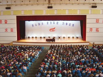 11月16日下午4:30,学院在体育馆召开了民族师范生迎评动员大会。学院党委副书记张学洪、党委学生工作部(处)长梁军、院团委书记江云清、民族师范学生科团委相关领导、各班班主任及民师1300余名学生参加了动员大会。 本次大会是民族师范学校并入我院后召开的第一次全校学生迎评动员大会。大会由梁军部(处)长主持,张副书记发表了热情洋溢的动员讲话。首先,张副书记就民师并入我院后整合学科专业、缓解办学空间和民族师范学生的个人成材发展等方面向在座的同学阐述了民师并入我院的重要意义;其次,张副书记重点介绍本月27日即将到来的教育部本科教学水平评估工作,详细阐述了我院的基本概况、评估的奋斗目标、意义、程序以及与学生工作相关的评估指标体系;最后,他希望广大民师同学在学院迎评促建的最后冲刺阶段,充分认识到自己所肩负的责任,认真学习评估知识,在关键时刻甘于奉献,调整状态,全力以赴,把对自己成长的关注和对学校发展的关注热情全部投入到学院的教学评估中来,发扬敬业、奉献、实干、团结与协作的桂工精神,以饱满的热情、积极的姿态来迎接教育部本科教学水平评估。
