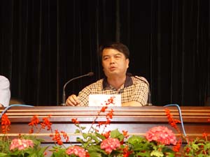 开幕式上,学院副院长肖明贵宣读了《关于表彰2003年度科研工作先进集体、先进个人的决定》,为学院科研工作作出突出贡献的资环系等3个科研先进集体和张学洪等75名科研先进个人依次上台领取了奖状和奖金。