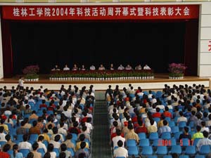 经过长时间精心筹备,我院2004年科技活动周终于在5月17日拉开帷幕。开幕式暨表彰大会在体育馆二楼大厅隆重举行,自治区科技厅副厅长赵震声、自治区教育厅科技处处长陆燕、桂林市副市长陈建军等嘉宾应邀出席开幕式。院党委书记、院长陈大克也出席开幕式并就今后学院科技工作提出了指导性意见(要点另发)。