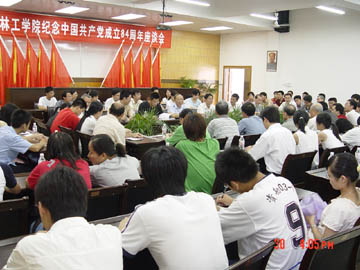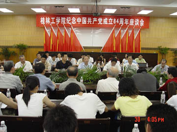 在全党开展先进性教育活动特别是第二批先进性教育活动启动之际,6月30日下午,我院在党校会议室召开座谈会,隆重纪念中国共产党建党84周年。 座谈会由学院党委副书记张学洪主持,学院党委各职能部门、各党总支、直属支部的领导,离退休老同志,教师代表和学生党员代表,入党积极分子、各民主党派和无党派人士代表等100多人参加。学院党委书记阳国亮出席了座谈会。 在座谈会上,代表们踊跃发言,一起回顾了84年来中国共产党带领中国人民克服艰难险阻,实现了民族独立与人民解放;带领中国人民进行伟大的社会主义建设,走改革开放之路,使一个昔日积贫积若的半封建半殖民地的旧中国变成如今独立、富强、民主的新中国的辉煌历程。通过座谈,大家对于“没有共产党就没有新中国”这一真理有了更加深刻的理解和体会。代表们还结合自己的工作学习实际和亲身经历,表达了自己对党的热爱,并表示要从自身做起,勤奋学习,努力工作,发挥共产党员的先锋模范作用,争取为党和人民的事业做出最大的贡献。 学院党委书记阳国亮在座谈会上发表讲话。他首先代表学院党委向学院全体共产党员致以节日的祝贺和亲切的问候,并向积极投身于学院建设和发展的全院师生员工表示衷心的感谢。阳书记希望大家要把实现党的最高理想与自己的实际工作和学习结合起来,当前尤其是要认真学习刚刚结束的我院第二届党代会的有关文件,要在贯彻落实文件精神的基础上,抓好党的建设,重点是抓好党的思想理论建设、组织建设和对党员的教育。阳书记宣布,从今天开始,我院作为开展保持共产党员先进性教育活动的第二批单位之一,正式启动开展保持共产党员先进性教育活动,他希望所有共产党员都要积极投身到保持共产党员先进性教育活动中去。阳书记最后表示,在党的领导下,在全院广大党员和师生员工的共同努力下,桂工一定能够迎来灿烂辉煌的明天。 最后,张学洪副书记作总结发言,他说,时代在进步,学院在发展,在为教育事业发展而挥洒汗水和付出辛劳的征程中,我们始终坚信鲜红的党旗将永远指引我们迈向胜利的前方。让我们在学院党委的正确领导下,高举邓小平理论伟大旗帜,坚持以“三个代表”重要思想为指导,坚持正确的办学方向,弘扬“桂工精神”,抓住发展要务,恪守“两个务必”,践行“三个代表”,同舟共济,凝聚力量,共同推进学远事业的更大发展,为把我院建设成为高水平教学型大学而努力奋斗!
