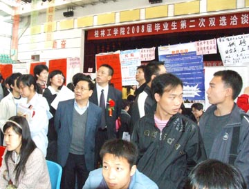 长期以来,学院党委一直高度重视就业工作。近五年,学院毕业生就业率均在90%以上,一直位居广西高校前列,从2003年开始年年被广西自治区教育厅授予就业工作先进单位。2007年我院毕业生有4000多人,而全院平均就业率达92.6%,在全区排第二。同时,这两年我院的毕业生的就业质量也有了一定程度的提高,2007年学院毕业生签订正式协议的人数大幅增加,协议就业率比06年增加了二十几个百分点(21.2%),考研的人数和被录取的人数也在逐年增加。 党的十七大报告把“实施扩大就业的发展战略,促进以创业带动就业”作为加快推进以改善民生为重点的社会建设的重要内容,提出了“就业是民生之本,要坚持实施积极的就业政策,加强政府引导,完善市场就业机制,扩大就业规模,改善就业结构”的宏观目标。学院党委认真贯彻落实党的十七大精神,以开展继续解放思想大讨论活动为契机,坚持以人为本,认真抓好就业工作。学院党委书记黎志逘多次在会上明确提出一定要把就业工作作为一项民生工程来抓实抓好。学院积极创新就业工作思路,努力拓宽就业渠道,不断开创就业工作的新局面。本次双选会、毕业生推介会和 “订单式人才培养协议签字仪式”的成功举办,就是一个很好的例证。