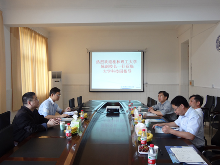 5月9日下午,陈学军副校长率领科技处、信息学院相关人员一行5人到桂林电子科技大学科技园进行交流调研。 座谈会上,桂林电子科技大学科技园管理委员会黄延磊主任热情接待了陈副校长一行,并简要介绍了大学科技园筹建历程及发展情况。陈副校长对桂林电子科技大学科技园的热情接待表示感谢,并对其管理模式和运行机制等进行了详细咨询。 随后,双方围绕大学科技园基本条件、申报程序、科技园的主要功能、前期建设注意事项等问题进行了深入细致的交流。