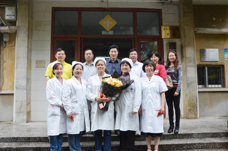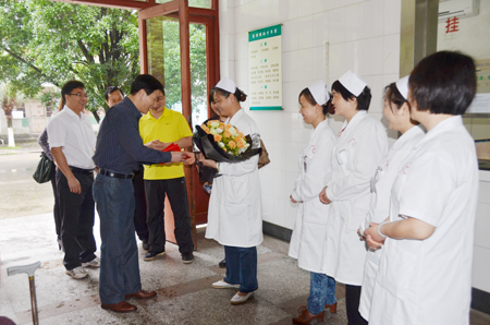 王赣华副书记向校医院医护代表送上节日的鲜花及慰问金
