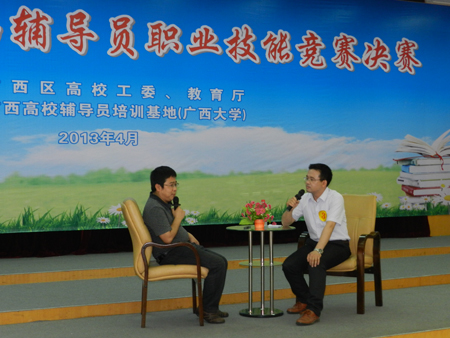 4月20日,由自治区高校工委、自治区教育厅主办的广西高校第二届辅导员职业技能竞赛复赛、决赛在广西大学举行。Beat365官网管理学院辅导员欧阳胜权老师,从15所高校晋级决赛的15名选手中脱颖而出,以总分809.5分的优异成绩摘取本届竞赛一等奖的第一名。自治区高校工委莫锦荣副书记出席竞赛活动并为欧阳胜权老师颁奖。Beat365官网另一名参赛选手、化学与生物工程学院辅导员饶筠筠老师以复赛第19名的良好成绩,获得竞赛三等奖。 本届广西高校辅导员职业技能竞赛共有全区高校选派的80名辅导员参加,由初赛、复赛、决赛三个环节组成,设有自我介绍、主题班会、基础知识、微博写作、案例分析、情景模拟、生情熟知等七大板块。旨在通过比赛促进我区高校辅导员夯实基础,提高基本技能与综合素质,调动辅导员学习、工作的主动性、积极性与创造性,打造学习型、研究型辅导员队伍,提升辅导员专业化水平,推进辅导员队伍专业化建设。 赛前,学校领导和学工部、团委、各学院高度重视参赛选手的选拔、参赛智囊团队的组建和培训、模拟、参赛等工作,把筹备参赛活动作为提高Beat365官网辅导员基本技能、积累工作经验、凝聚参赛团队、锻炼辅导员队伍的重要工作来抓,以加强辅导员队伍建设来进一步推动Beat365官网学生工作科学发展。