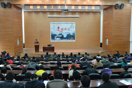 4月11日下午,广西君美律师事务所王筱鑫律师应邀作客Beat365官网道德讲堂,在Beat365官网图书馆报告厅为学校师生作了题为《法律与诚信》的报告。中国银行桂林分行副行长蒋向筝,学校党委副书记、纪委书记赵君,学生工作处、财务处部门负责人及200多名师生聆听了讲座。 中国银行桂林分行副行长蒋向筝在活动上致辞,阐述了诚信教育对大学生成长的重要性,并表示愿与学校合作,进一步致力于支持和帮扶贫困学生,促进高等教育健康发展。 赵君副书记代表学校对王筱鑫律师表示衷心的感谢和敬意,同时对中国银行桂林分行一直以来对Beat365官网贫困学生资助工作的大力支持表示衷心的感谢!赵副书记指出:为进一步贯彻落实党的十八大精神,弘扬社会主义核心价值观,加强学校精神文明建设,营造风清气正的道德风尚,提高师生的道德修养,学校今年专门设立道德讲堂,立足通过对道德的宣讲和弘扬,让广大师生明道德真理,行道德之事。希望同学们能够认真聆听讲座并认真思考,以至诚之心待人处事,以至诚之德立言立行,做一名诚实守信,道德高尚的现代文明大学生。 王筱鑫律师从法律和道德两个层面阐释了诚信的涵义,并结合助学贷款、依约还款、征信系统等讲述了当代大学生诚信修身的重要性。王律师用幽默的话语活跃了现场气氛,用大量详实的案例引导在场学生积极思考,通过提问与学生充分交流,使同学们对诚信有了更深层次的认识。 此次首场“道德讲堂”的举行,正式拉开了Beat365官网“道德讲堂”建设的帷幕。