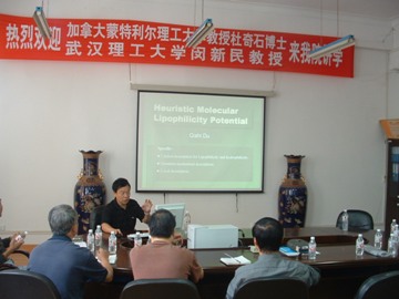 10月13日,应教育部重点实验室邀请,加拿大蒙特利尔理工大学教授杜奇石博士和武汉理工大学教授闵新民博士到我院讲学。材化系主任刘树深教授、省部共建教育部重点实验室主任吴伯麟教授、韦春教授、王林江教授、蒋述兴教授、饶保林教授等学术学科带头人,材料、高分子方向教师和研究生、部分本科生参加了学术报告会。报告会由吴伯麟教授主持。 在《分子的启发式亲水—亲脂势(HMLP)——亲水—亲脂性的量子化学描叙》报告中,杜奇石教授阐释了分子的“启发式”亲水—亲脂势(HMLP)模型原理,指出分子表面的亲水性和亲脂性是由分子表面的静电势分布决定的,并提出了从静电势分布计算亲水—亲脂势的方法。杜教授从量子化学和统计力学原理出发,完成了分子的亲水-亲脂势(HMLP)的理论推导,把这一模型建立在坚实的理论基础上。又把HMLP用于药物分子设计的2D-QSAR方法,还计算出了20种天然氨基酸的亲水—亲脂指标。这些成果为把HMLP用于蛋白质分子的结构与性质的关系、蛋白质折叠、蛋白质的相互识别与作用等的研究奠定了基础。 在《计算材料学的方法与应用》报告中,闵新民教授介绍了计算材料学的原理与方法,并应用该方法计算了钴酸盐类材料的晶体结构和电子结构,预测了该结构的性能。闵教授还根据自己的教学经验介绍了计算材料学课程的教学方法问题。