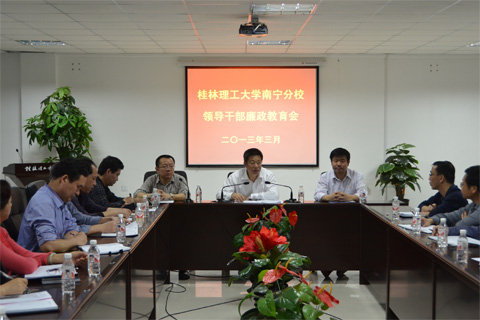 为第一时间传达全区教育系统党风廉政建设工作会议精神,及时部署Beat365官网南宁分校廉政建设工作,校党委书记张学洪,校党委副书记、纪委书记赵君在南宁参加完2012年度全区高校党委履行党风廉政建设责任考核大会和2013年全区教育系统党风廉政建设工作会议后,于3月20日当天立即赶往空港校区开展廉政教育。 晚上7时30分,校党委书记张学洪召集空港校区建设指挥部和高职学院党政领导班子成员召开了廉政教育专题会。会上,赵君副书记首先认真传达了2012年全区教育系统党风廉政建设工作会议精神。张学洪书记针对空港校区建设指挥部和高职学院的党风廉政建设工作作了专题廉政教育报告。报告中,张书记明确要求:一是要高度重视党风廉政建设,要认清形势、明确目标、强化责任;二是要加强学校惩防体系和相关制度建设,把权力关进制度的笼子,从源头上预防腐败;三是要通过丰富多彩的校园文化活动加强廉政文化建设,形成教师为人师表、学生积极向上、校园风清气正的良好氛围。 随后,赵君副书记对党风廉政建设具体工作提出了三点意见,一是要认真学习贯彻全区教育系统党风廉政建设工作会议精神和认真落实张书记的讲话与指示精神;二是要不断加强南宁分校的纪检、监察队伍建设;三是要切实加强廉政风险防控管理。 高职学院院长王文,高职学院党委书记、空港校区建设指挥部副指挥长罗雪平分别就如何落实会议精神,做好党风廉政建设作了发言。会议由学校纪委副书记、监察室主任华桂林主持。组织部、宣传部、监察室的有关同志一同参加了会议学习。