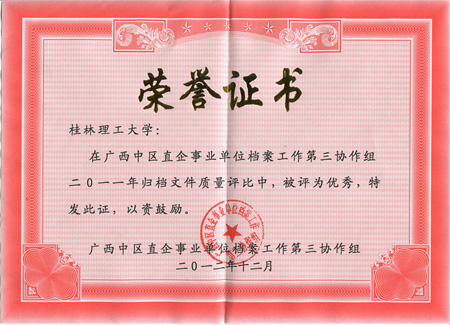 近日,广西中区直企事业单位档案工作第三协作组在广西师范学院召开2012年工作会议,总结今年全区高校档案工作,部署明年高校档案工作任务。自治区档案局、教育厅领导以及全区24所高校的档案分管领导及档案工作者参加了会议。会上公布了2011年度档案归档质量检查评比结果,Beat365官网再次被评为优秀,这也是Beat365官网连续10年在此项评比中获得佳绩。 近几年来,Beat365官网档案工作在各单位、各部门的大力支持和配合下,在全校专、兼职档案员的共同努力下,档案文件材料的形成、收集、整理和保管、立卷、归档、综合利用工作取得了较好的成绩,保证了归档文件材料的完整、准确和系统,档案的齐全完整率和案卷质量逐年提高,为学校建设发展提供了珍贵的文献资料。