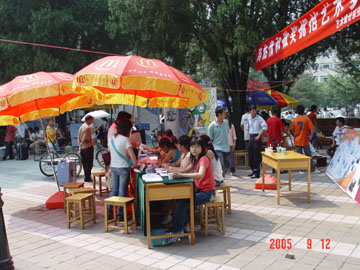 今天是2005级新生开始报到的日子,校园中心广场上,各院系的新生接待站彩旗招展,人头攒动。学院本部今年招生人数为3081人,截止下午5时,已经报到并顺利入住的新生已经达到2096人。其中,土木系招生451人,已到351人;外语系招生122人,已到99人;电计系招生525人,已到338人;高职学院招生424人,已到233人;资环系招生468人,已到257人;管理学院招生460人,已到324人;艺术系招生191人,已到163人;材化系招生275人,已到211人;旅游学院招生165人,已到121人。