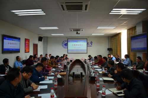 11月16日下午,学校在雁山校区行知楼二楼会议室召开专题理论学习会。在家校领导张学洪、解庆林、王赣华、孙宁、陈学军、曾繁荣、张鹏、张劲松出席会议。各二级党组织书记、各职能部门主要负责人参加了会议。学校党委书记张学洪主持会议并作讲话。