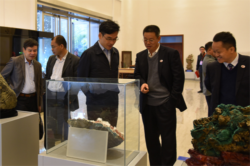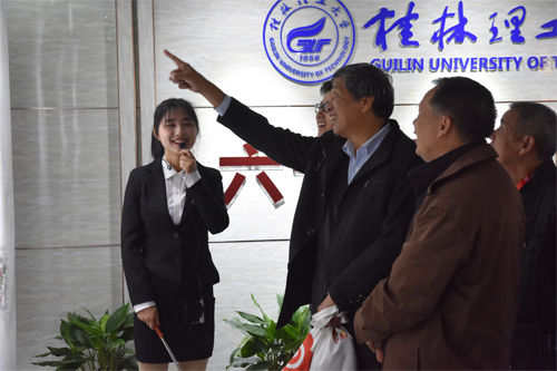 桂林市副市长樊新鸿(右)在解庆林校长(左)陪同下参观地质博物馆