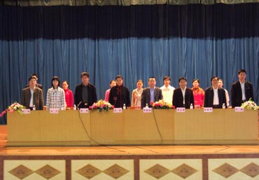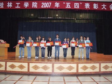表彰大会由院团委副书记李辉主持,出席这次表彰大会的领导有:学院党委委员、人事处处长华桂林,学工部(处)部(处)长熊英,团委书记辛立章,以及学院全体专职共青团干部。大会在嘹亮的国歌声中拉开帷幕,院团委书记辛立章首先宣读了表彰决定,接着,在主席台就座的领导和老师对获得学院“五四青年标兵”的10位同学和获得学院“五四”自强助学金的20名同学进行了颁奖。