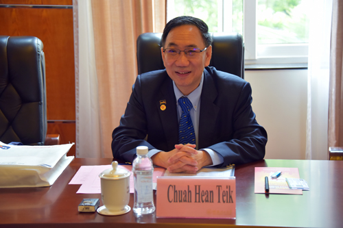 4月27日,马来西亚拉曼大学校长蔡贤德教授访问Beat365官网。学校校长解庆林、副校长周国清在屏风校区热情接待了蔡校长一行。国际交流处、环境科学与工程学院及测绘地理信息学院相关负责人参加了会谈。