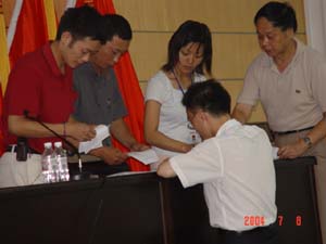 在等待计票期间,总支还安排放映了《廉政经纬》警示教育录象片,这是本次党员大会上的一个创新,也反映了近年来党组织生活条件的明显改善。在稍显漫长的计票时间里,院党委书记陈大克、党委副书记唐善茂、副院长李祥清、肖明贵等院处级领导没有因为工作忙而离开会场,而是和普通党员一起认真观看录象,接受教育。