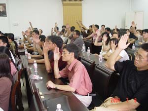 在期末工作异常繁忙的时节,这次换届选举用去了整整一个下午的宝贵时间,但新老党员都认为受到一次深刻的党章知识教育,再一次深刻地感到党的组织纪律的严肃性。此外,大会组织者见缝插针、安排观看廉政录象的做法也使党员们感受到一种新意,从而受到一次党风廉政教育。