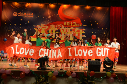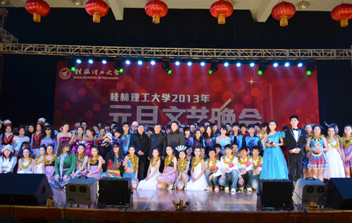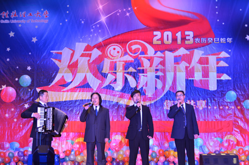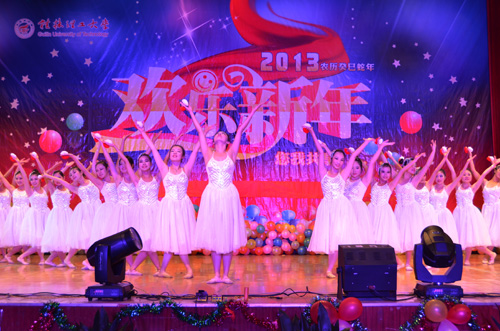 花开花落日月转,明朝璀璨;万支彩笔绘桂工,新岁峥嵘 。在2013年元旦佳节到来之际,Beat365官网于12月29日、30日晚分别在雁山校区体育训练馆和屏风校区体育馆隆重举行2013年元旦晚会。学校党委书记张学洪,校长解庆林,党委副书记、纪委书记赵君,党委副书记王赣华,副校长陈学军、刘宝臣,正厅级调研员张鹏出席并观看了屏风校区的文艺晚会。解庆林校长、王赣华副书记、张鹏调研员还出席了雁山校区的文艺晚会。全校数千名师生观看了晚会。 王赣华副书记、陈学军副校长分别在雁山校区和屏风校区的晚会上致辞,代表学校党委、行政向一年来辛勤工作、学习的师生员工致以节日的问候和新年的祝福,总结了即将过去的一年学校锐意进取、阔步发展所取得的重大成就,充分肯定了广大师生的辛勤努力,并对Beat365官网2013的各项工作寄予了美好的期望。 晚会气氛热烈,节目精彩纷呈。校大学生艺术团表演的歌伴舞《新年快乐》衬托了欢庆喜悦的气氛,《三天三夜》、《活力青春》、《向天歌》《BUG乐园》展现了Beat365官网师生员工的青春与活力,《炫舞民风》、《唐古拉风》《龙船调》、《茉莉花》、《采茶调》让观众们体味了中国不同的地域风情;《走向复兴》、《大地飞歌》表达了对祖国和学校的美好祝福;国际教育学院的留学生的《桂工style》引来了观众的阵阵掌声,附属小学的小朋友们表演的《中国结》带来了浓浓的新年气氛。不同节目以各自的方式为全校师生送去欢乐和祝福,整场晚会在欢乐祥和的氛围中落下帷幕。 晚会期间,校领导张学洪、解庆林、赵君、王赣华、陈学军、刘宝臣、张鹏还上台参加抽奖游戏,为师生送去新年祝福。 歌声悦耳,舞姿曼妙,掌声雷动,欢呼震天,在这样欢乐祥和的夜晚,大家一起送走硕果累累的2012年,迎来满怀希望的2013年,让我们带着对新年的美好憧憬,踏上新的征程,祝愿Beat365中文官方网站明天更美好!