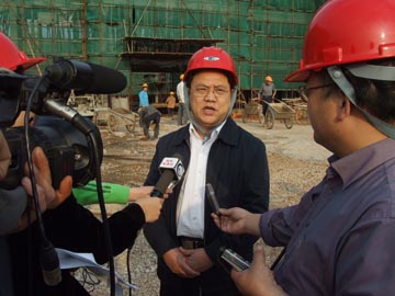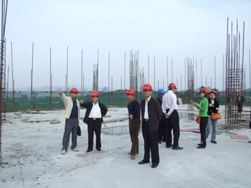 4月24日下午,广西日报、广西电台、广西电视台、人民网广西视窗、桂林日报、桂林晚报、桂林电台和桂林电视台等各大媒体记者到我院雁山校区采访了校区建设情况。记者招待会在雁山校区建设指挥部会议室举行。学院党委书记黎志逘,学院院长赵艳林,学院副院长、雁山校区建设指挥部指挥长肖明贵回答了记者们的提问。在介绍了我院的基本概况、学科专业情况、师资和学生情况、学校发展的总体目标、雁山校区项目建设的必要性、项目建设内容及分期建设计划、项目投资估算及资金筹措和项目投资效益分析之后,赵院长还使用雁山校区鸟瞰效果图向记者们详细介绍了一、二期建设项目的进展情况和三期建设项目的情况。学院党委宣传部部长于海平,党办院办副主任唐壮东,土木系主任、雁山校区建设指挥部副指挥长陈学军,基建处处长、雁山校区建设指挥部副指挥长陈慕杰,基建处副处长、雁山校区工程部主任刘宜河以及基建处副处长唐航星等同志参加了记者招待会。 记者招待会结束后,黎书记、赵院长和肖副院长以及我院与会的其他同志与记者们一起深入施工现场进行实地考察。在施工现场,黎书记和赵院长向施工人员反复强调,一定要保证工程质量。在接受记者们的现场采访中,黎书记和赵院长表示,按照目前的工程进度,我们一定能够保证今年9月1日新生入住雁山校区,5年后,一个环境优美、功能齐全的美丽的桂林工学院新校园一定会展现在广西人民的面前。