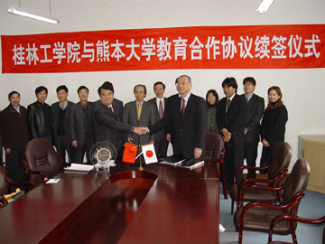 与桂林工学院有着多年合作基础的熊本大学日前由日本熊本大学古川教授率领工学部教授代表团一行7人应邀到我院进行友好访问,双方就开展教学、科研等方面的交流与合作做进一步的联系、磋商,在继续拓宽探讨学术研究的交流渠道、就交换留学生协议条款方面达成共识。