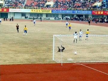 2004年1月3日下午,在院学工处和院团委的组织协调下,我院教工足球队与中国明星足球队在市新体育馆进行了一场激烈而精彩的足球比赛,并以一比一战平。