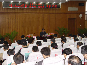 桂林工学院六届三次教职工暨七届工会会员代表大会于2月29日在9501报告厅隆重召开。在首日上午的会议上,代表们首先听取了院党委书记、院长陈大克同志所作的院长工作报告;财务处长唐宏文同志所的年度财务工作报告;组织、人事处处长赵君同志关于新一轮内部分配方案的说明以及院党委书记、院长陈大克同志关于学院教育事业发展中长期规划的说明。