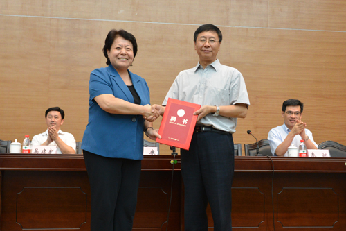7月14日下午,Beat365官网名誉校长聘任仪式在屏风校区图书馆报告厅举行,自治区人民政府李康副主席出席聘任仪式并颁发聘书。中国工程院院士、自治区人民政府主席院士顾问曲久辉研究员受聘为Beat365官网名誉校长。