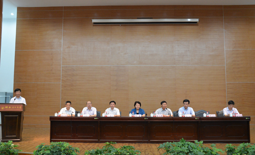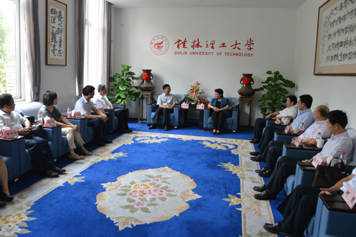 李康副主席、曲久辉院士、自治区相关部门和桂林市领导及在校领导合影