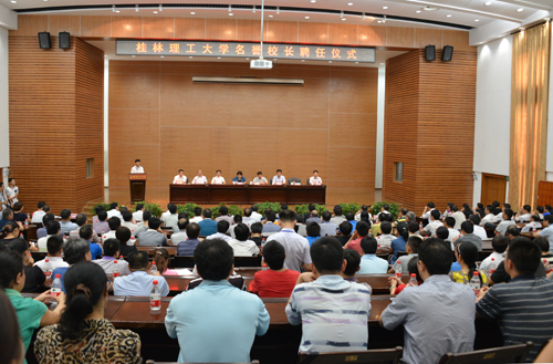 自治区人民政府副秘书长吴建新,自治区高校工委书记、教育厅厅长秦斌,教育厅副厅长蔡昌卓,桂林市人民政府副市长巫家世,在校领导张学洪、解庆林、王赣华、陈贵英、肖岳峰、周国清、梁福沛、张鹏等一同出席聘任仪式。解庆林校长主持聘任仪式。