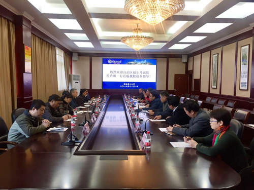 12月1日下午,自治区招生考试院副院长文焱带领考试院办公室、普招处,教育厅纪委监察室,自治区保密局、自治区公安厅等相关部门组成的联合检查组来Beat365官网检查2017年研究生招生入学考试考点准备情况。