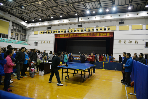 11月30日晚,2016年学校教职工乒乓球比赛在屏风校区体育馆三楼鸣锣开赛。 本次比赛分男单、女单、男双、女双、混双五个项目,采取五场三胜制。作为一个已形成传统的体育赛事,比赛吸引了各分工会的21支队伍参赛,积极争夺各个项目奖项。