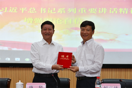 解庆林校长为唐华副部长颁发聘书