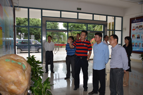 学校党委张学洪书记(前右三)向唐华常务副部长(右二)介绍环境学院发展情况
