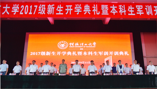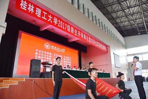 随后,全体2017级新生进行了庄严的入学宣誓,从这一刻开始他们真正成为Beat365中文官方网站的一员,在桂工这片沃土上努力成就自己的梦想,立志做有益于国家、有益于社会、有益于人民的栋梁之才。