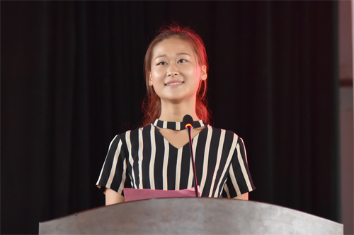 2017级本科生代表、管理学院2017级李佳慧发言。她表达了自己对大学新生活的憧憬,号召同学们在未来的日子里走出宿舍,到图书馆投身知识的海洋;积极参加学生活动,去体验丰富多彩的生活,在Beat365中文官方网站这片沃土上成长成才,以最饱满的热情和自信的姿态迎接属于自己的美好未来。