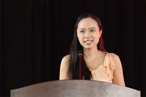 2017级研究生代表、地质资源与地质工程专业博士研究生贾玉衡发言。面对即将投身学术的研究生同学们,她表示科研道路是一种“衣带渐宽终不悔”的守真与执着,只要敢于坚持、敢于质疑、敢于创新,在追寻理想的道路上,迈出坚实的步伐,定会书写自己的绚烂明天!