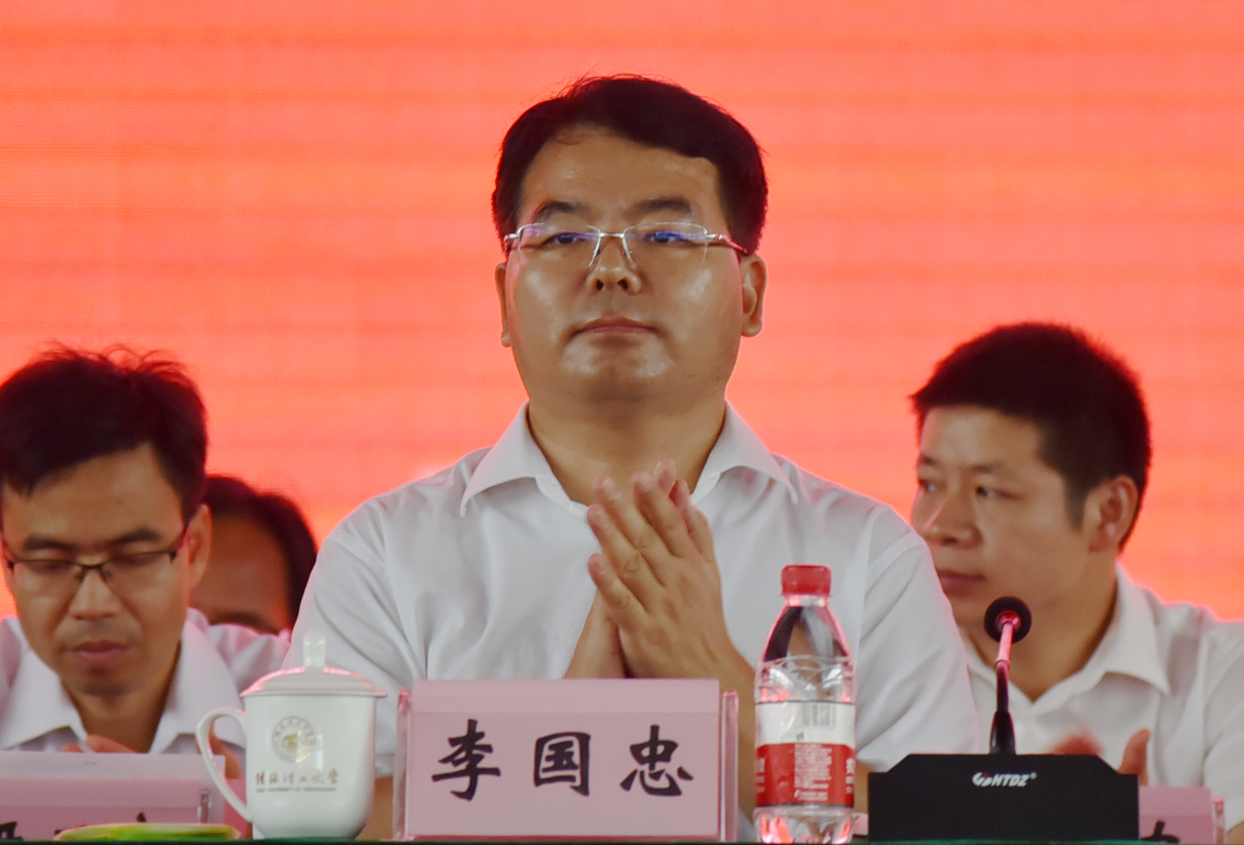 解庆林校长在典礼上致辞,代表全校师生员工向来自祖国各地的新同学们表示最热烈的欢迎,向为同学们的成长付出艰辛努力的父母和老师表示衷心的感谢!他借用习近平总书记在北京大学师生座谈会重要讲话中的“勤学、修德、明辨、笃实”与在座的各位同学共勉:要勤学苦练,做一个有真才实学的人,他希望同学们要好好珍惜大学的青春时光,勤于学习,敏于求知,畅游浩瀚书海,认识未知世界,探求客观真理;要崇德修身,做一个道德高尚的人,他希望同学们积极锤炼品德,积极弘扬社会主义核心价值观,树立远大理想,胸怀报国志向,养成积极的人生态度,培养健康的生活情趣,扣好人生的第一颗扣子;要明辨是非,做一个耳聪目明的人,他希望同学们培养独立的思辨能力,学会辩证思考问题,学会透过现象看到问题的本质,面对纷繁多变的社会现象,保持头脑清醒,正确抉择,立场坚定,自信从容;要笃实敦厚,做一个脚踏实地的人,“做人做事贵在一个‘实’字”。解校长饱含深情地说道,“学校60多年的办学历程,正是一代又一代‘桂工人’在不断的探索和奋斗中一步一个脚印走出来的”,他希望同学们能够弘扬和继承“艰苦创业 敬业奉献 团结协作 开拓创新”的桂工精神,珍惜韶华,脚踏实地,把远大抱负落实到实际行动中,担当起历史使命和责任。