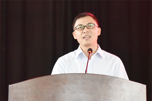 教师代表、化学与生物工程学院张云老师发言。就如何度过充实美好的大学生活,张老师与同学们分享了自己的两点感悟:要积极面对挫折,在战胜挫折的过程中成长;要善于沟通、懂得感恩,做一个对学习、科研与生活都充满“热度”的人。他希望同学们继承和发扬桂工精神,以此时此刻作为新的起点,不断拼搏,为梦想不断前行。