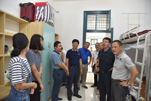 张劲松副厅级调研员(右一)等校领导深入宿舍了解新生生活情况