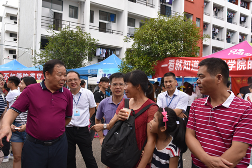 9日,校领导李国忠、解庆林、周国清、梁福沛、王敦球、张劲松等在相关部门负责人的陪同下来到各迎新工作点和学生宿舍,看望报到的新生和家长,慰问参与迎新的师生员工,为迎新工作注入了别样的温暖与热情。