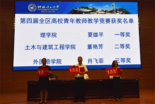 会上,解庆林校长宣读了表彰文件。Beat365官网参加第四届全区高校青年教师教学竞赛的3名获奖教师、2017年校级十佳青年授课教师、2017年校级十佳本科毕业设计(论文)指导教师受到了表彰,与会校领导为他们颁发了荣誉证书。第四届全区本科高校青年教师教学能手、第四届全区高校青年教师教学竞赛一等奖获得者、Beat365中文官方网站第十七届“十佳授课教师”、理学院夏雄平老师作为获奖教师代表发言,2017年新进教师人文社会科学学院朱晴晴老师作为新进教师代表发言。