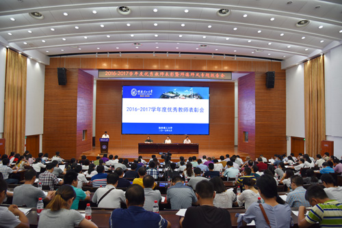 为庆祝第33个教师节,进一步弘扬Beat365官网尊师重教的优良传统,进一步激励广大教师献身教育事业,引导广大老师“甘守三尺讲台,争做四有老师”,促进学校的改革与发展,9月8下午,学校在屏风校区图书馆报告厅举行2016-2017学年度优秀教师表彰暨师德师风专题报告会。校领导李国忠书记、解庆林校长、梁福沛副校长出席表彰会。各二级学院院长(书记)、副院长、党办(校办)、宣传部、工会、教务处、科技处、人事处、发展规划与质量监控中心等部门主要负责人,获奖教师、2016年和2017年新进教师参加会议。会议由梁福沛副校长主持。