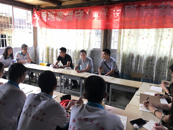 7月19日,学校副厅级调研员张劲松在校团委负责人的陪同下,赴龙胜县龙脊镇满田村、古壮寨等地看望社会实践团队师生。