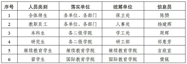 注:学校各类人员排查统计工作由对应统筹单位牵头负责,经信息员统计好后汇总到陈赟同志处,由陈赟同志负责对接属地或上级相关部门完成学校数据报送。